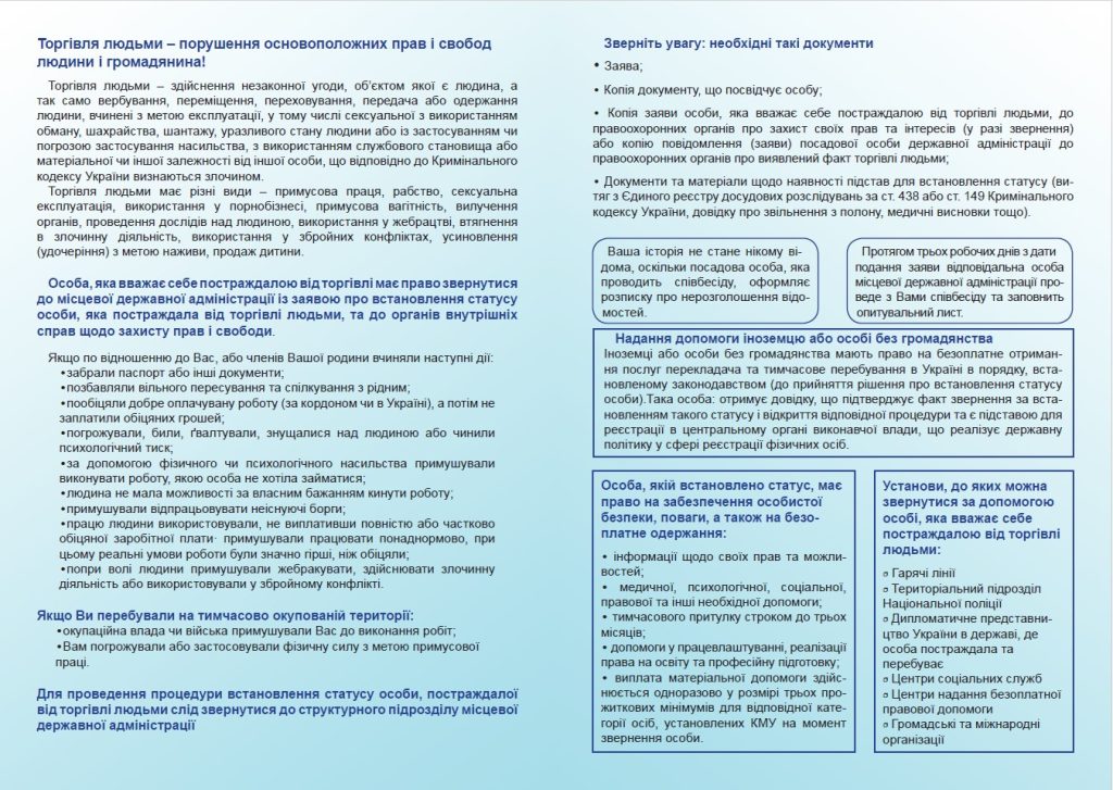 Жертвою торгівлі людьми може стати будь-яка людина, незалежно від статі, віку, соціального статусу, рівня освіти тощо. Важливо знати, що робити у ситуації, коли Ви чи ваші близькі у небезпеці, бути обізнаними і обережними.