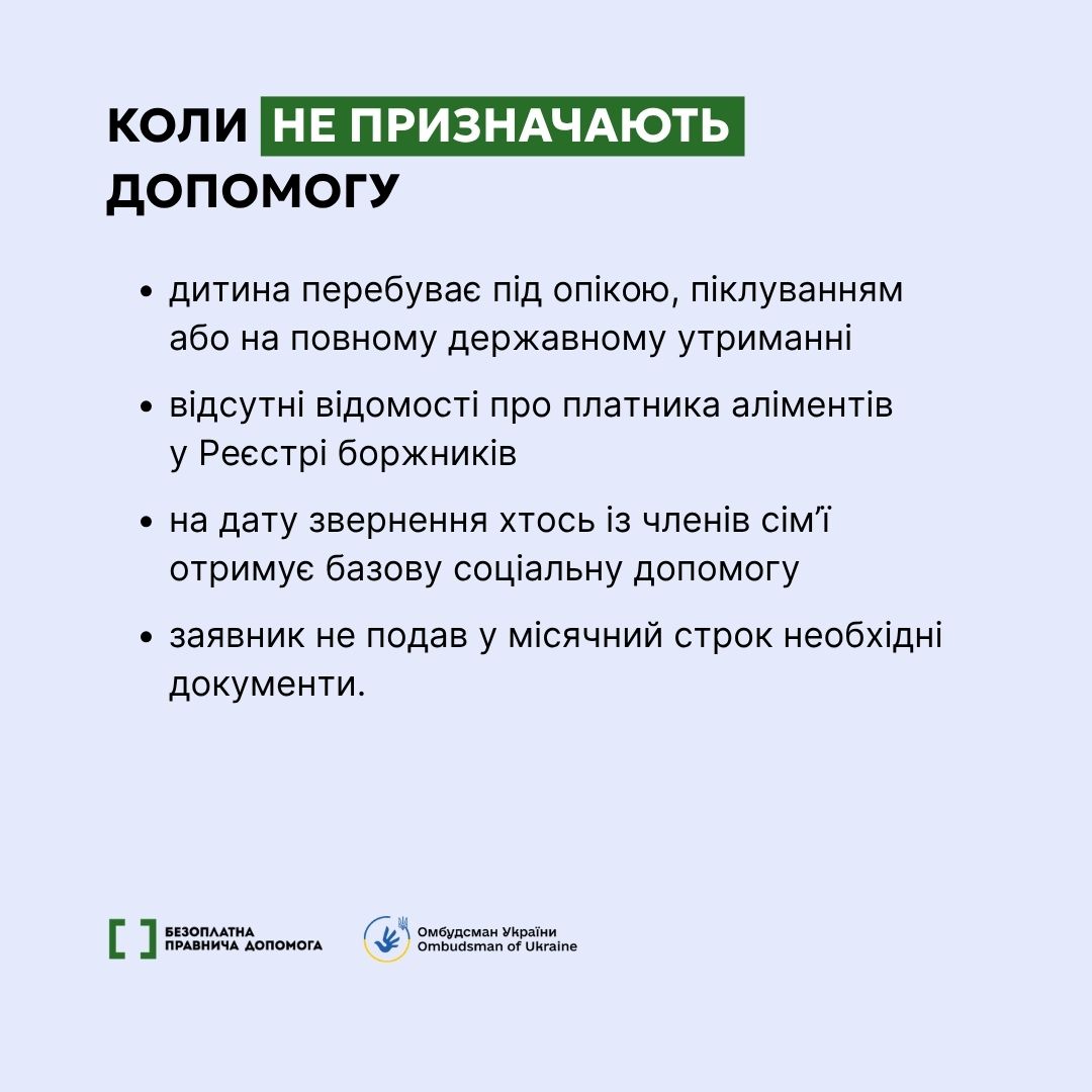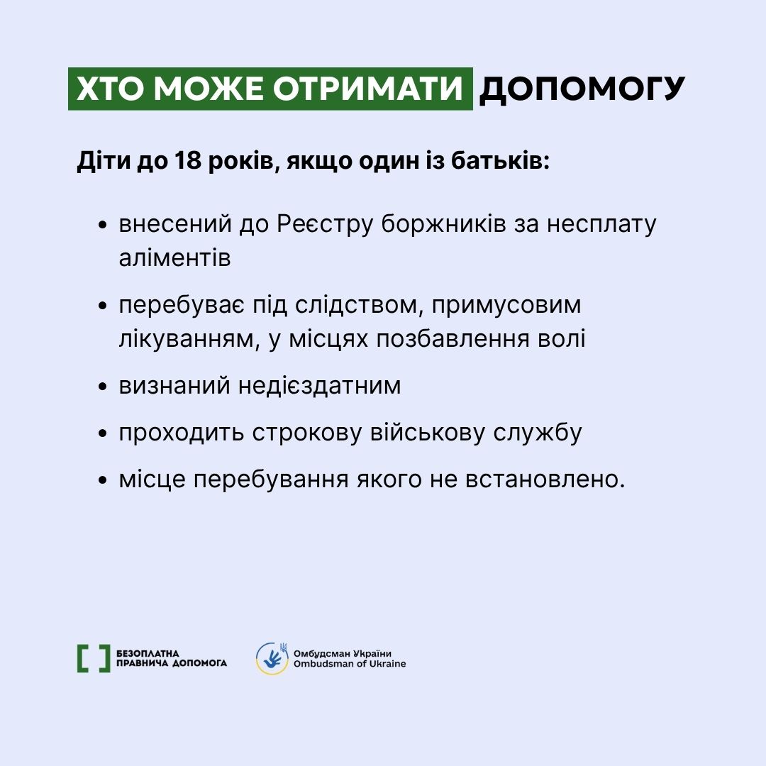 Якщо один із батьків не сплачує аліменти — держава надає тимчасову допомогу дітям. Зокрема її призначають, якщо один із батьків ухиляється від сплати або місце його проживання невідоме.