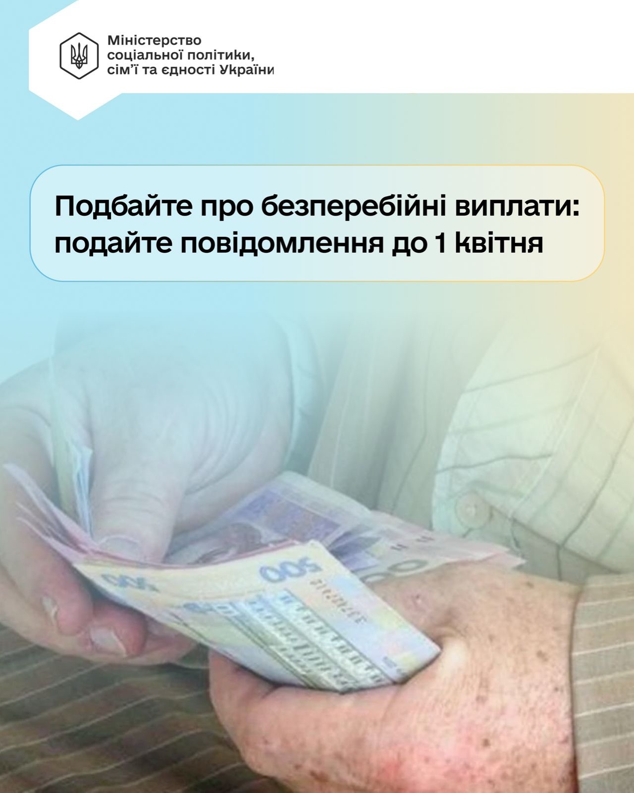 Мінсоцполітики нагадує: до 1 квітня частині пенсіонерів потрібно подати повідомлення про неотримання виплат від рф. Це важливо для подальшого нарахування української пенсії.