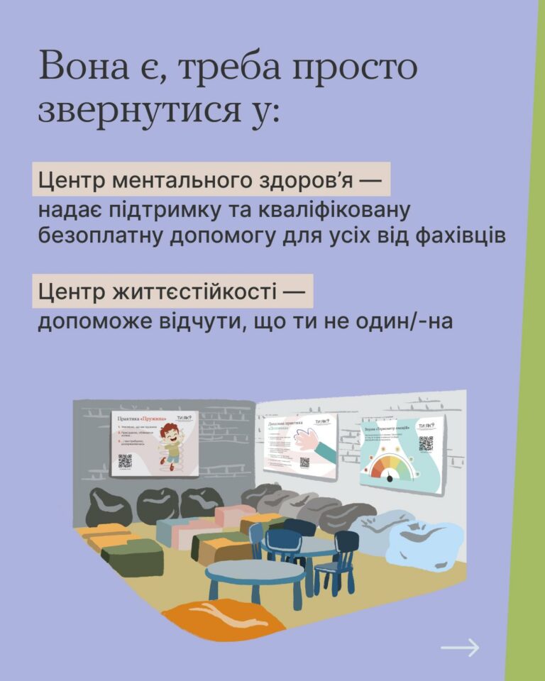 Підтримку для ментального здоров’я можна отримати й від сімейного лікаря, і від соцпрацівника. Головне — не боятися її шукати. А це зовсім нескладно. У каруселі маємо список перевірених місць, де про тебе потурбуються. Ти ж звернешся за підтримкою, якщо потрібно буде, правда?