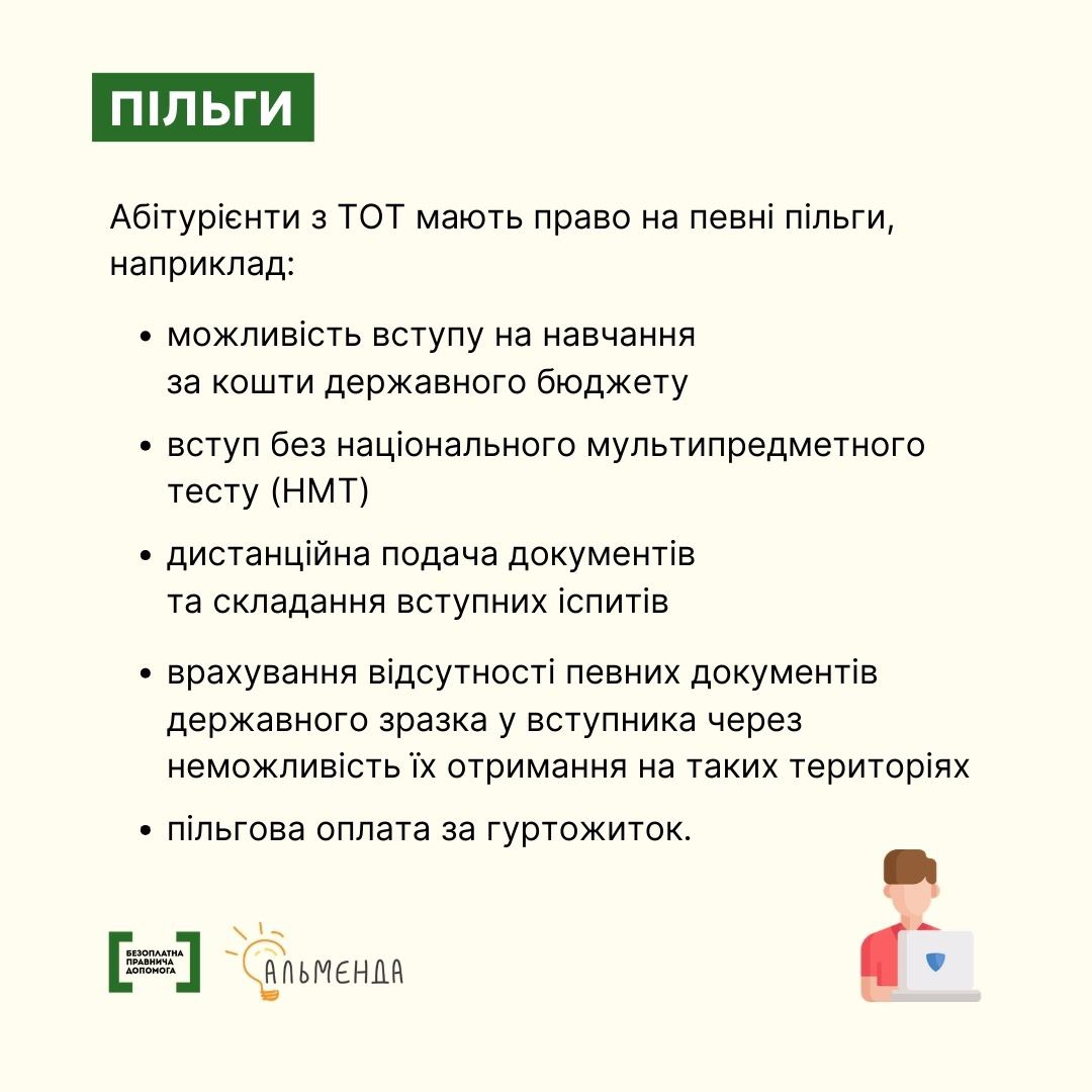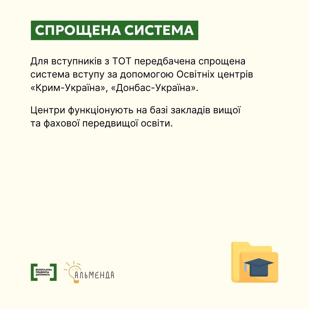 Основні особливості вступу для осіб з ТОТ: