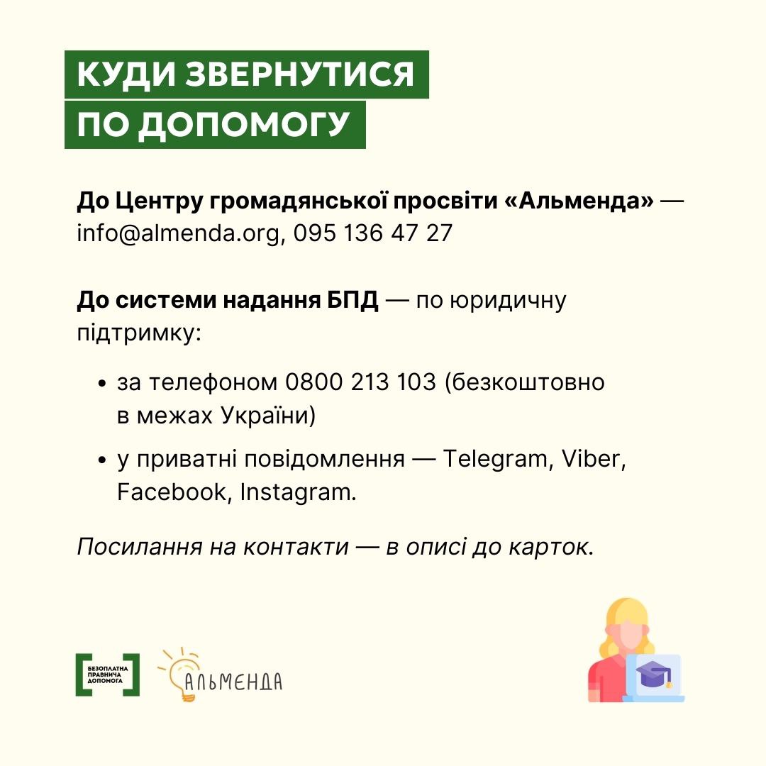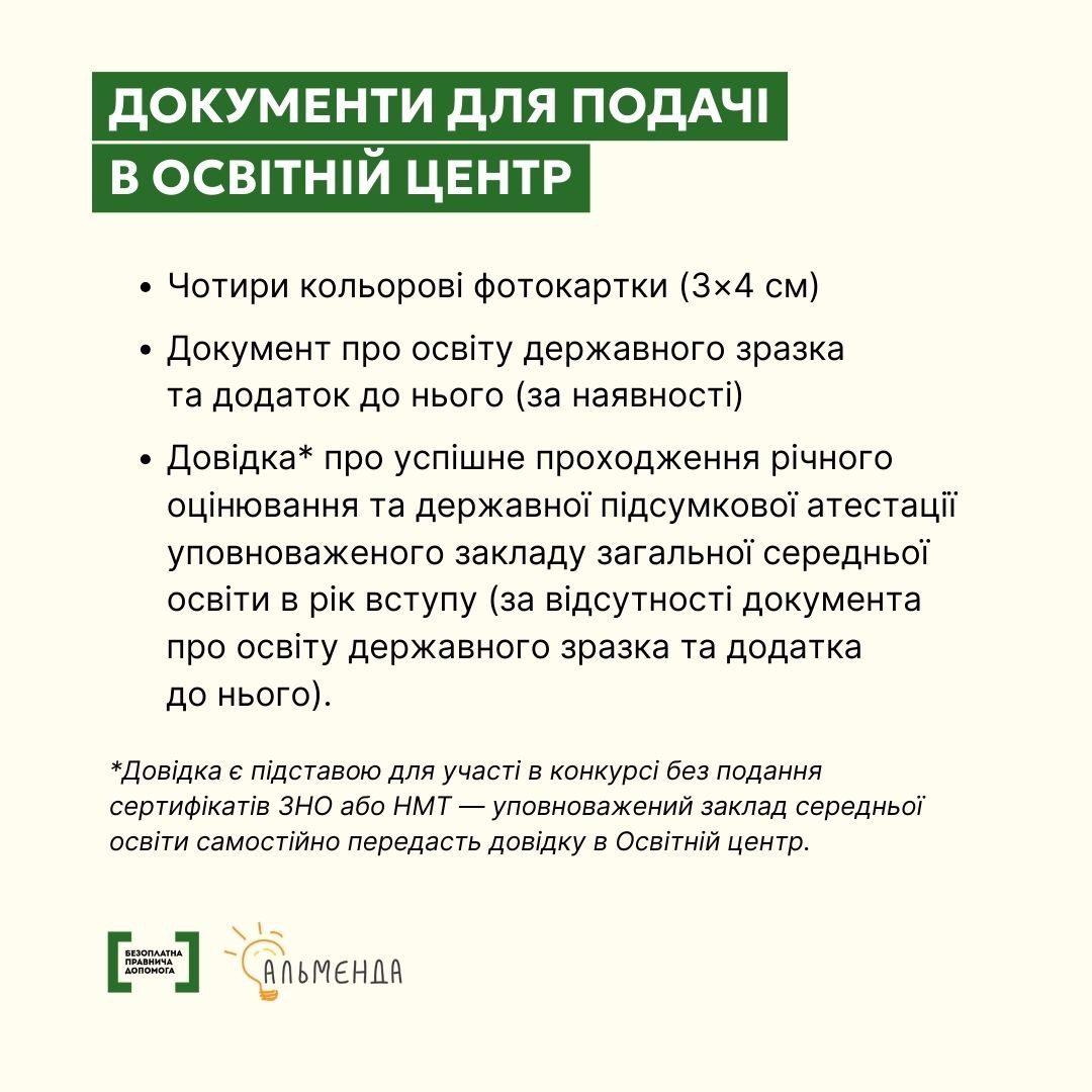 Детальніше про вступ до закладів вищої та фахової передвищої освіти, а також відповіді на поширені запитання — на сайті Центру громадянської просвіти «Альменда»: https://almenda.org/…/vishha-ta-faxova-peredvishha…/…