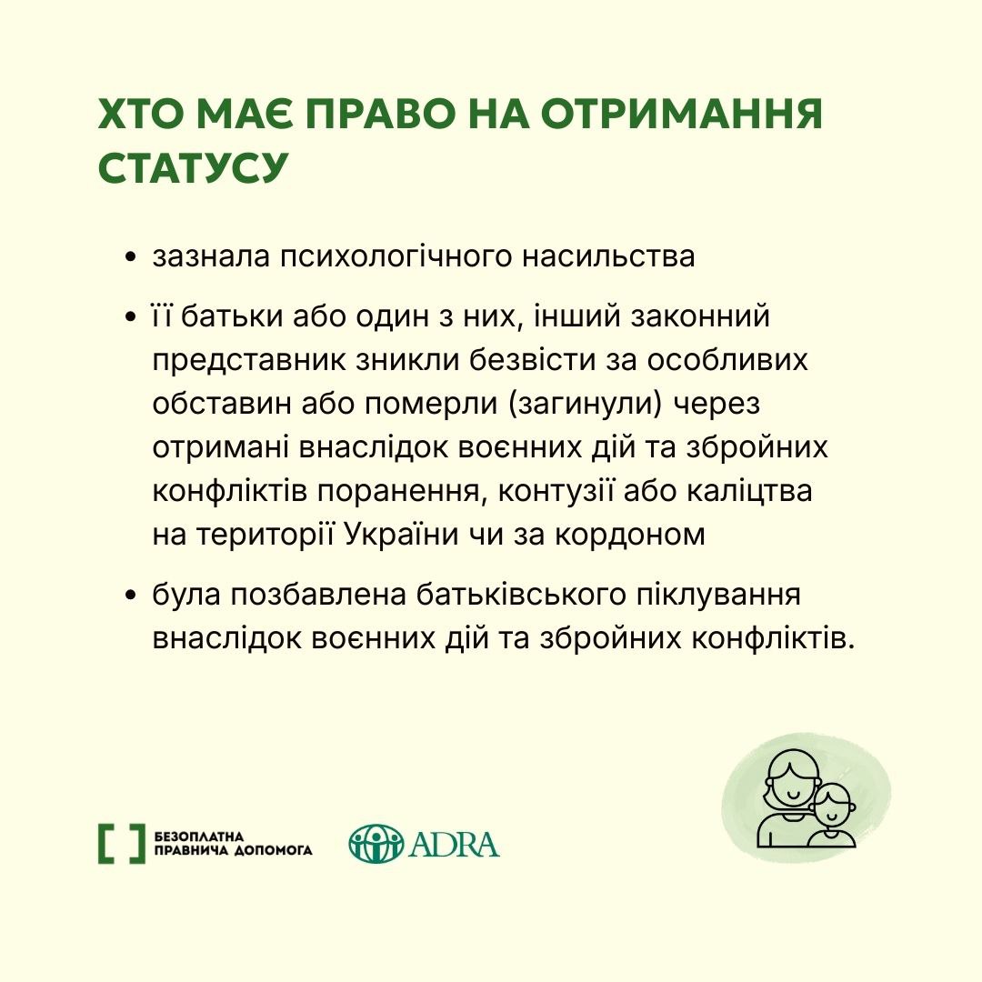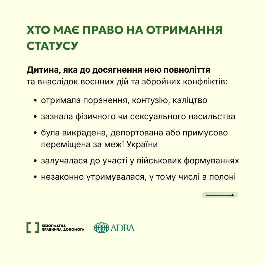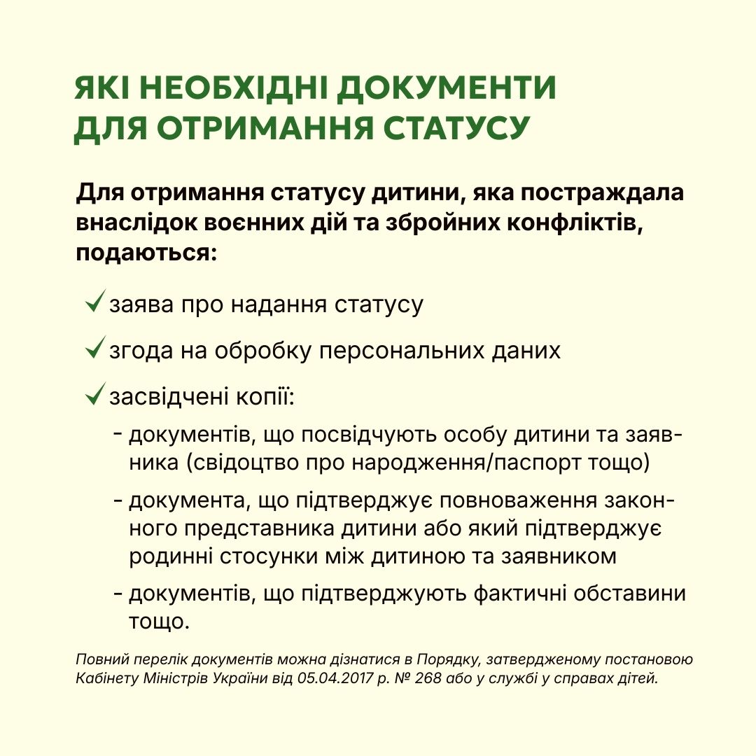 Дитина, яка постраждала внаслідок воєнних дій та збройних конфліктів, має право на спеціальний статус. Як його отримати — в картках