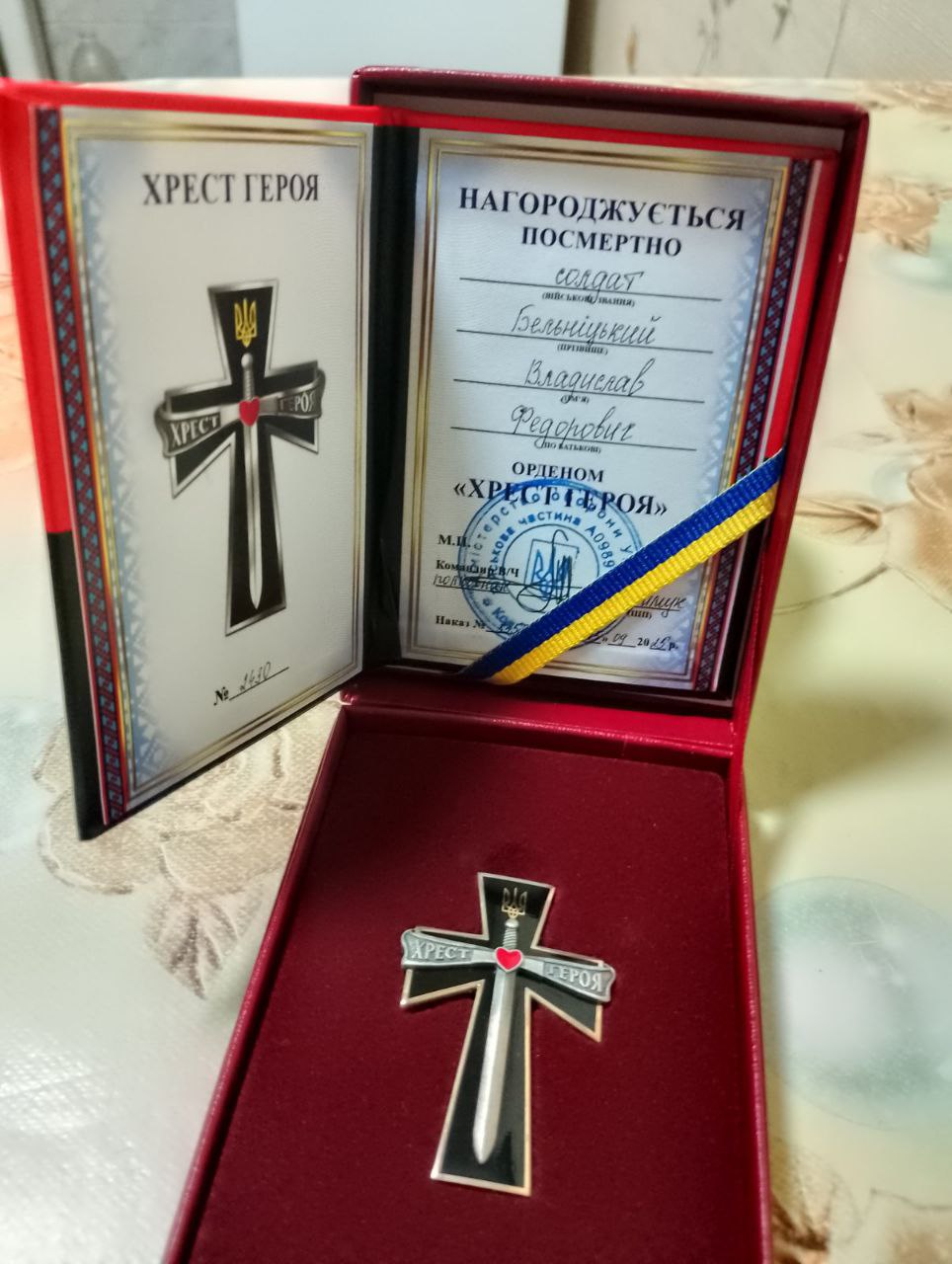 Герої живуть у пам’яті народу…Родина нашого земляка, захисника України Владислава Федоровича Бельніцького, отримала нагороду — орден «Хрест Героя» (посмертно). Владислав Федорович з початку повномасштабного вторгнення з відвагою та витримкою захищав на Сході незалежність України та право на вільне життя . Загинув наш Герой під час виконання бойового завдання 08 вересня на Донеччині, в районі населеного пункту Піски.