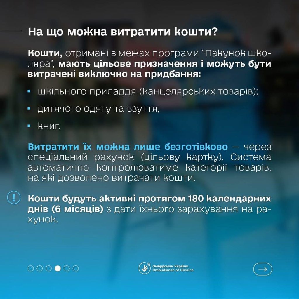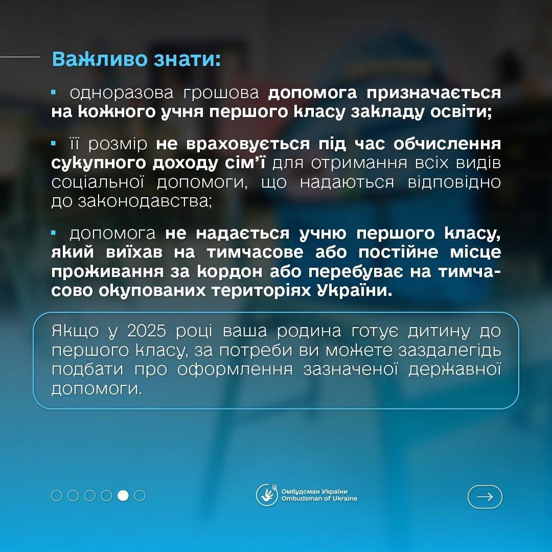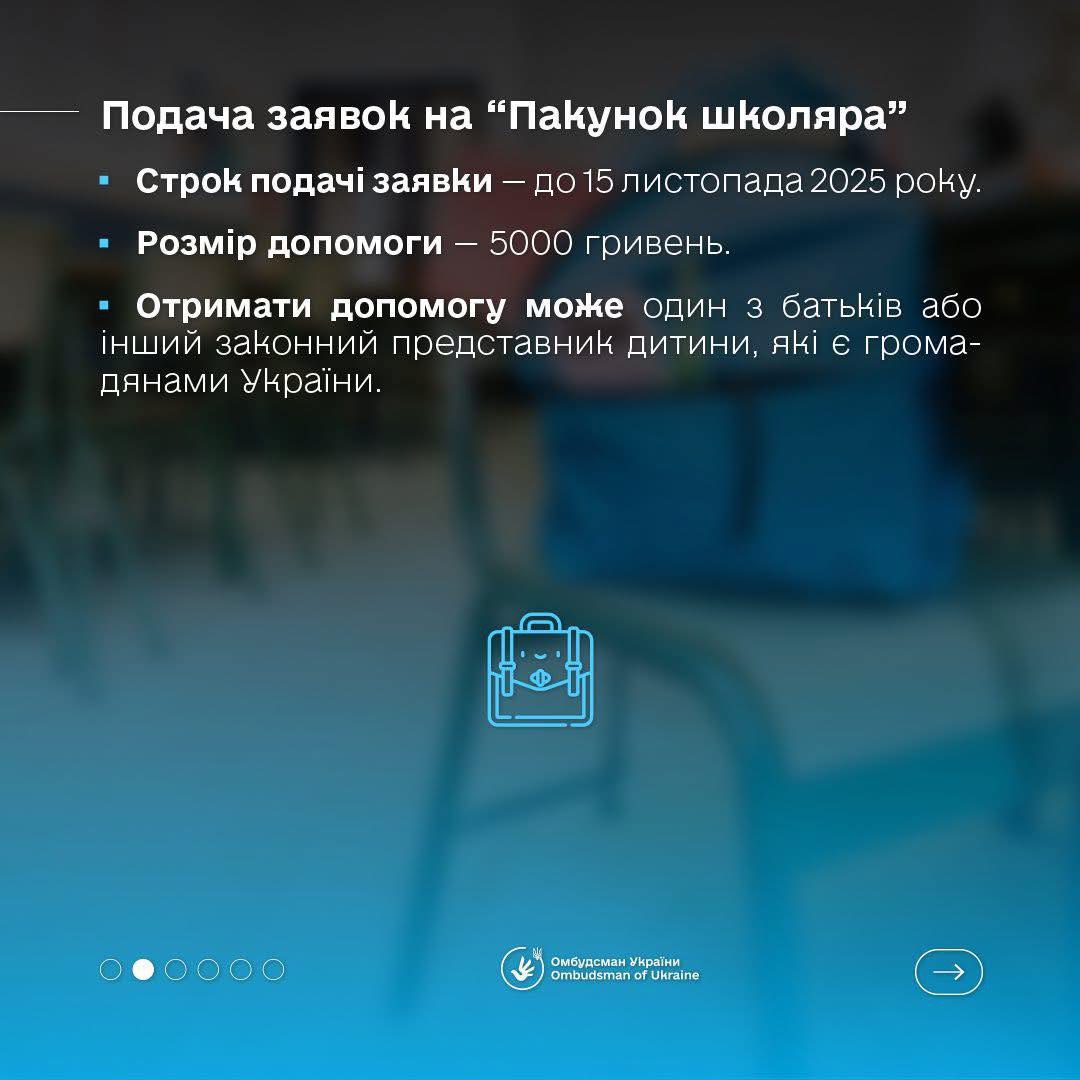 Нагадаємо, що у 2025 році стартувала програма “Пакунок школяра”, спрямована на зменшення фінансового навантаження на родини, які готують дитину до першого класу. Щоб дитина гарантовано отримала цю допомогу, важливо дотримуватися вимог, визначених Порядком надання одноразової грошової допомоги учням перших класів “Пакунок школяра”.