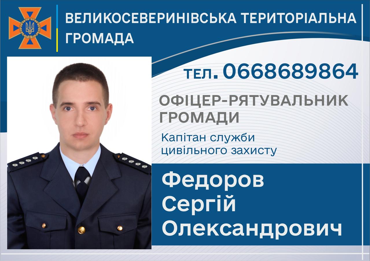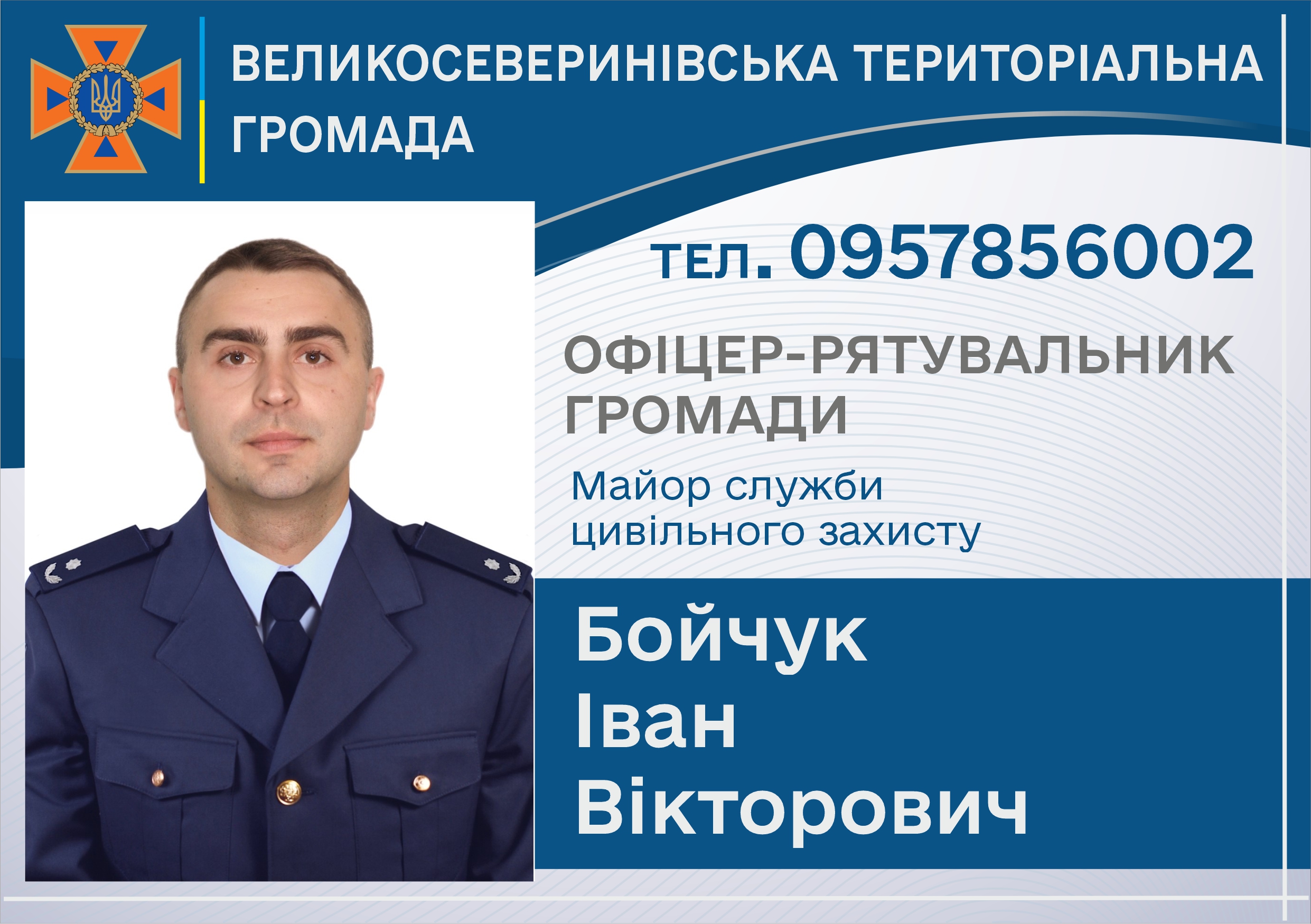 Захист, безпека та спокій мешканців — це не лише справа держави, а й спільна відповідальність кожного. У нашій громаді стартував новий проєкт МВС України – «Офіцер-рятувальник громади».  Відтепер у громаді працюють  офіцери-рятувальники Бойчук Іван Вікторович та Федоров Сергій Олександрович- фахівці, які  завжди поруч щоб запобігти надзвичайним ситуаціям та навчити, як діяти у разі небезпеки.