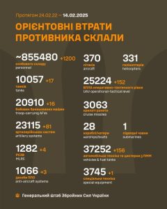 Головна Новини Орієнтовні втрати противника з 24.02.2022 -14.02.2025 втр