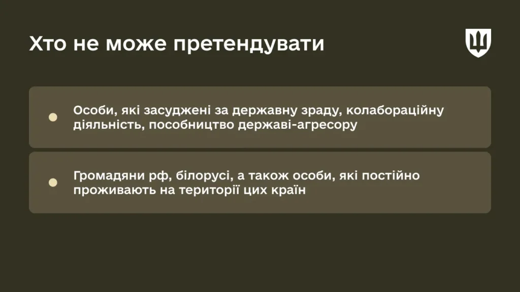 - особам, які засуджені за державну зраду, колабораційну діяльність, пособництво державі-агресору