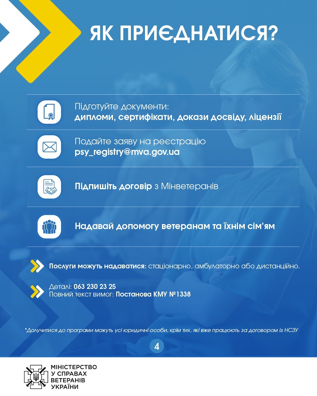 Головна Новини Працюйте психологами для ветеранів війни, членів їхніх сімей, родин полеглих та отримуйте оплату за послуги від Мінветеранів 15