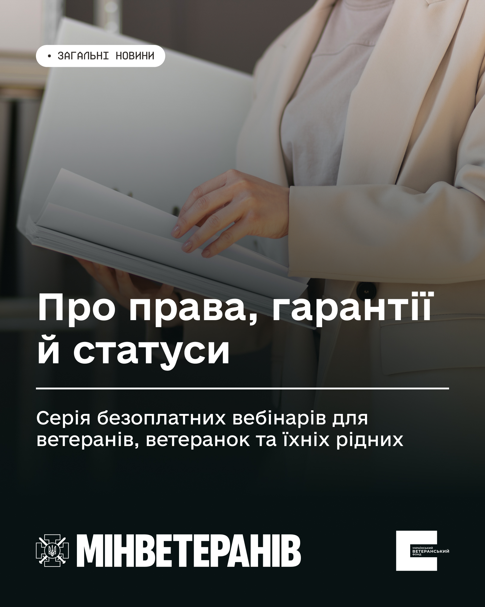 Головна Новини Про права, гарантії й статуси: серія безоплатних вебінарів для ветеранів, ветеранок та їхніх рідних Про права гарантії й статуси