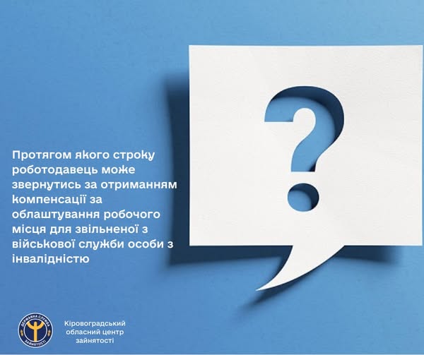 Головна Новини Протягом якого строку роботодавець може звернутись за отриманням компенсації за облаштування робочого місця для звільненої з військової служби особи з інвалідністю 444