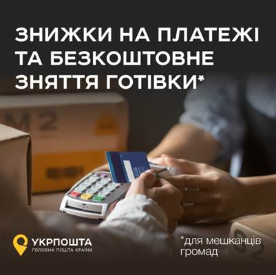 Укрпошта запровадила нові пільги для жителів сільської місцевості. Відтепер комісія за оплату будь-яких платежів у сільських стаціонарних та пересувних відділеннях становитиме лише 15 гривень. Крім того, компанія пропонує можливість знімати готівку з банківських карток без жодної комісії в сільських стаціонарних відділеннях.