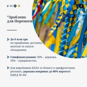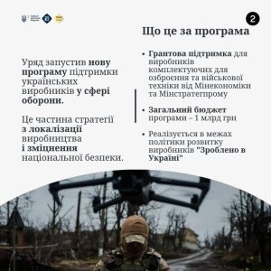 Уряд запустив нову програму підтримки українських виробників у сфері оборони “Зроблено для Перемоги” 04.06.2025 Її загальний бюджет – 1 млрд грн Хто може подати заявку і на що можна витратити гроші – дивіться в інфографіці.