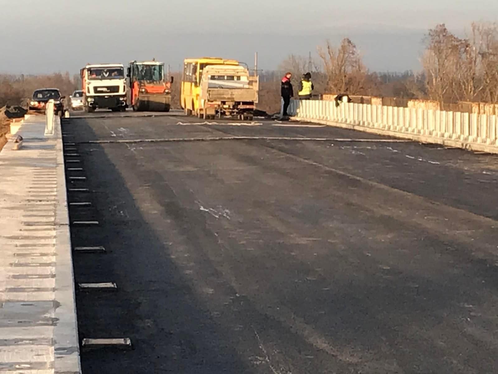 Наразі дорожники працюють над влаштуванням сфальтобетонного покриття на під’їздах та самій споруді. Паралельно триває монтаж бар’єрного огородження.