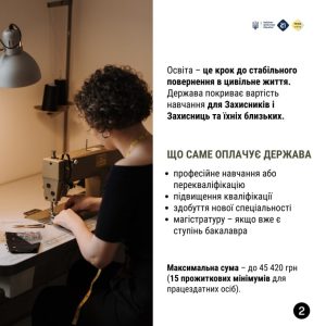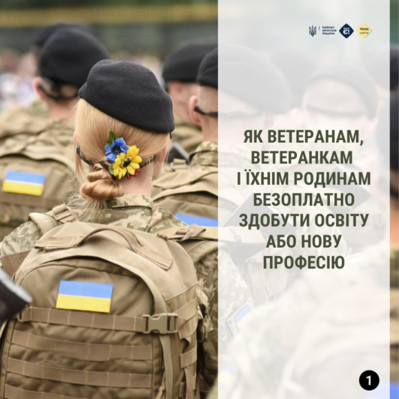 Ветерани, їхні рідні та родини загиблих Захисників можуть безоплатно пройти професійне навчання, перекваліфікацію чи вступити до магістратури