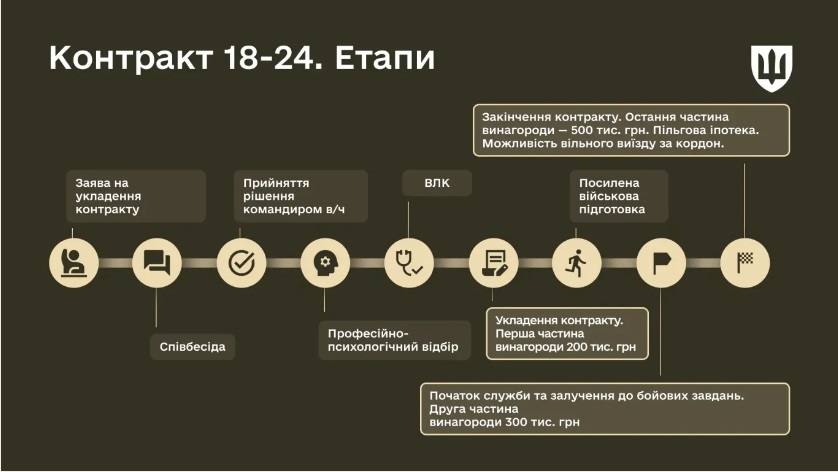 У лютому Міністерство оборони України офіційно розпочало проєкт «Контракт 18-24». Це добровільна ініціатива для українців віком 18-24 роки, які готові приєднатися до Сил оборони на один рік. Роз’яснюємо покроковий алгоритм залучення на військову службу за цим контрактом, а також інші особливості контракту.