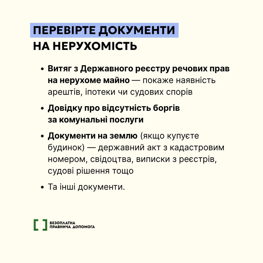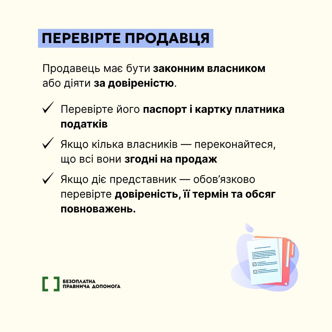 Якщо ви купуєте нерухомість, важливо знати базові правила перевірки документів, продавця та самого обʼєкта. На що насамперед варто звернути увагу — розповідаємо у картках.